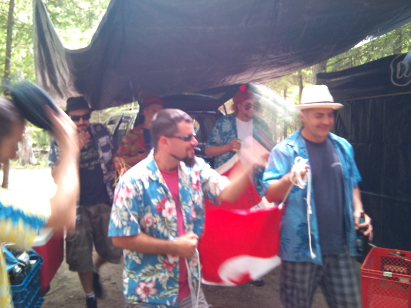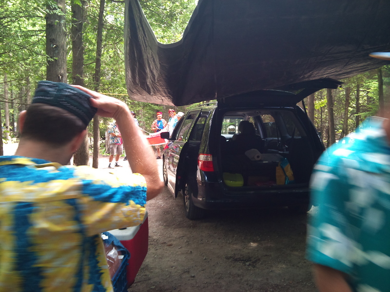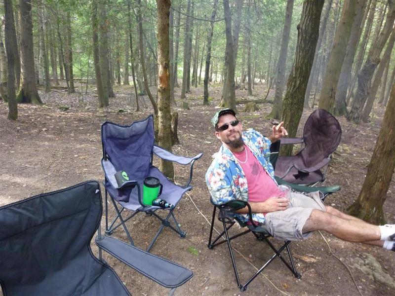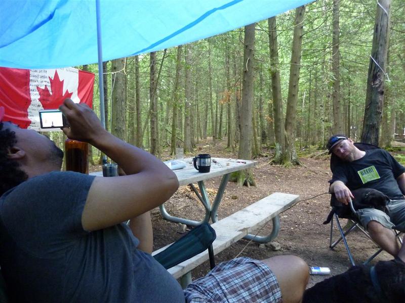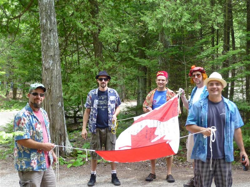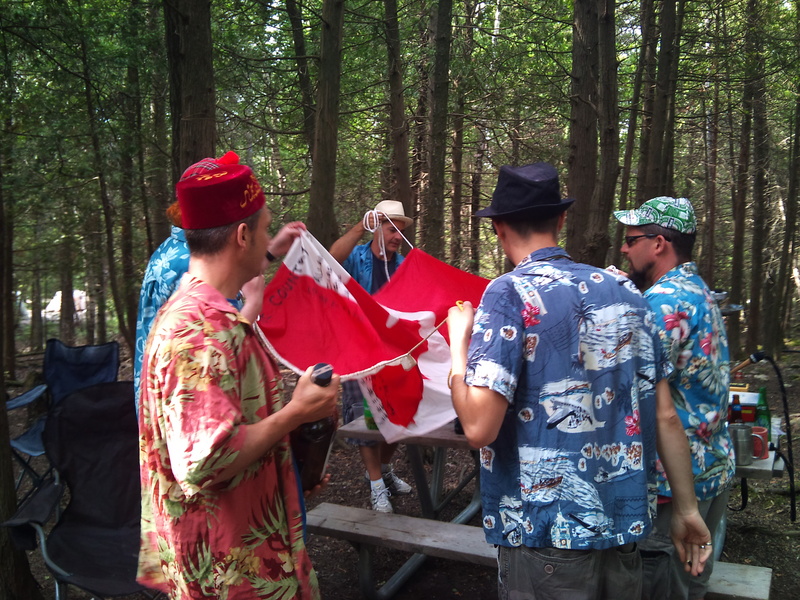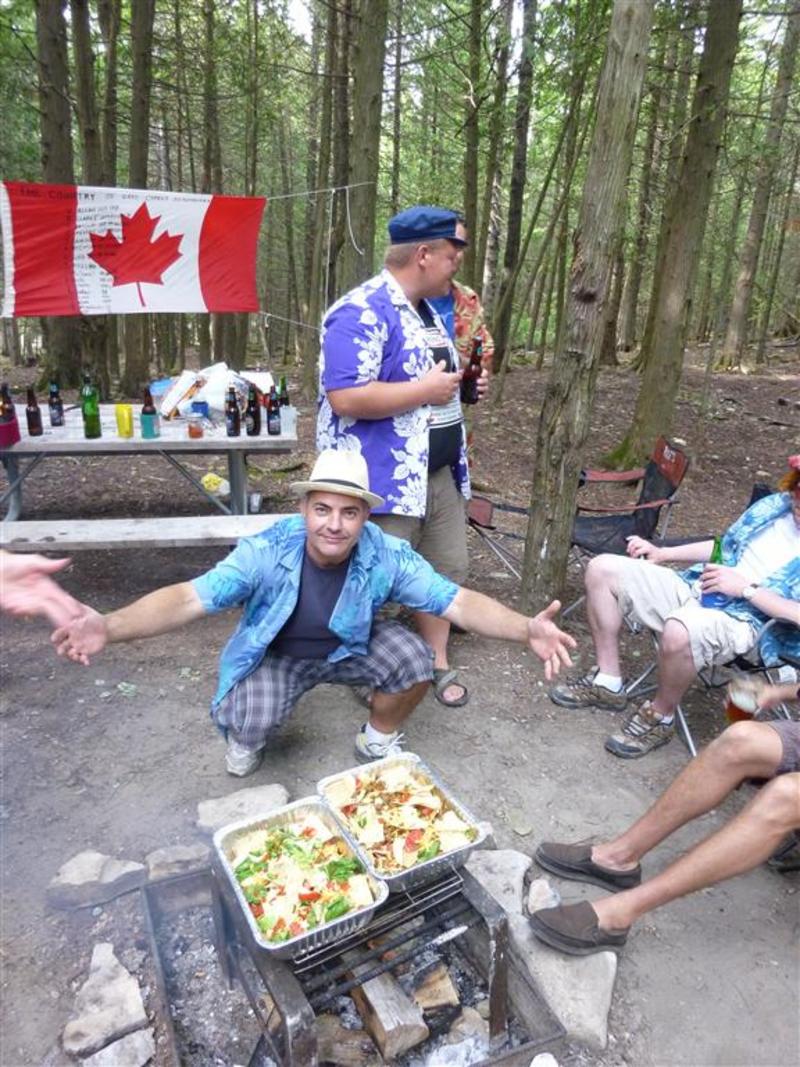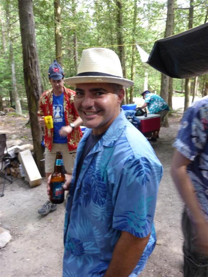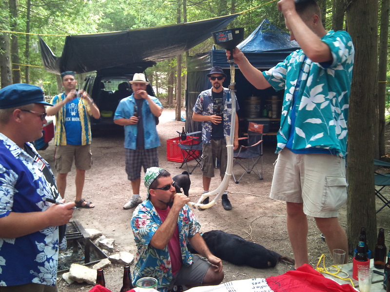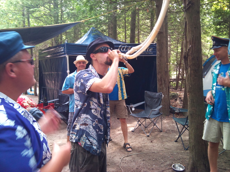 Timelines: Meaford Beer store for 10AM Friday Aug 12th. Groceries were pre-purchased with cool heads. No beer-fever impulse purchases. Convoy over Derry Line to avoid Hwy 26 construction. Brad Clarke’s hand was a dolphin. Several stopped in Wiarton to again impress upon the locals the importance of Hawaiian shirts and pizza. More booze was required, and procured, from the local LCBO.